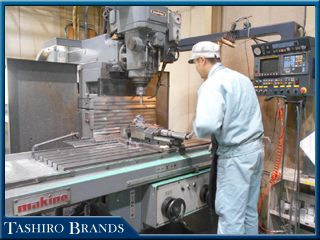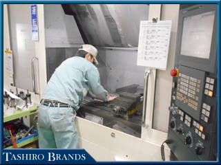 2Fの生産技術室で作られたデータや図面を基に1Fの現場で加工を進めます。