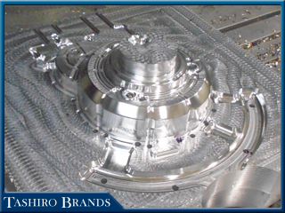 フライスで外形を仕上げた後に高速加工機にセットし、更に精密な形状へと削り出していきます。