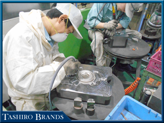 仕上がった入子を手作業で磨いていきます。